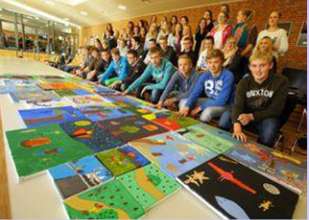 Die Schülerinnen und Schüler der 8. Jahrgangsstufe der Haupt- und Realschule Twistringen 2014 mit ihren im Laufe des Projektes entstandenen Bildern